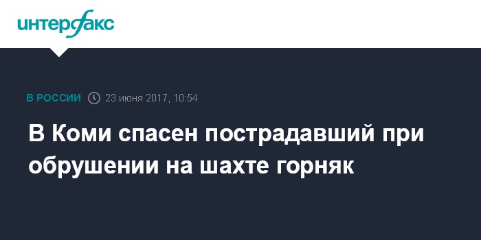 Москва. 23 июня. INTERFAX.RU - Один из горняков шахты "Интинская", находившихся в забое во время обрушения породы, получил травмы, его выводят на поверхность, сообщает ГУ МСК Коми.