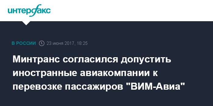 Минтранс согласился допустить иностранные авиакомпании к перевозке пассажиров "ВИМ-Авиа"