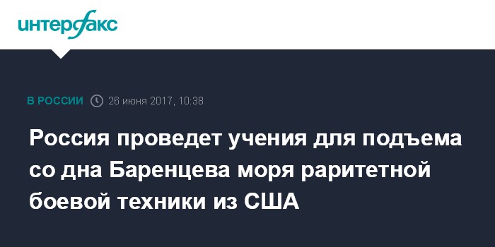 Россия проведет учения для подъема со дна Баренцева моря раритетной боевой техники из США