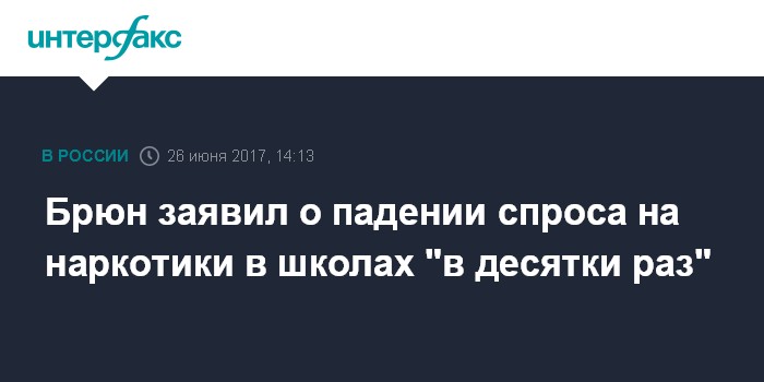 По его информации, спрос на наркотики в школах упал в десятки раз. "Сейчас после тестирования в школах мы выявляем от 1 до 3% наркозависимых. Мы наблюдаем снижение в десятки раз спроса на наркотики", - сказал Брюн. Он уточнил, что в целом число наркозависимых в стране и по Москве снизилось на 2%.