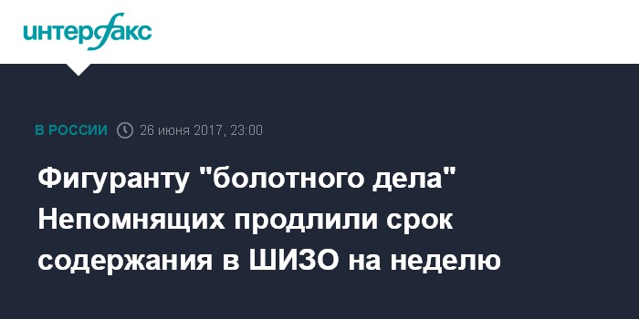 Москва. 26 июня. INTERFAX.RU - Фигуранту дела о беспорядках на Болотной площади в Москве Ивану Непомнящих и еще одному заключенному, ранее заявившему об избиении в ярославской колонии, снова продлили время содержания в штрафном изоляторе, сообщил "Интерфаксу" пресс-секретарь фонда "Общественный вердикт" Олег Новиков.