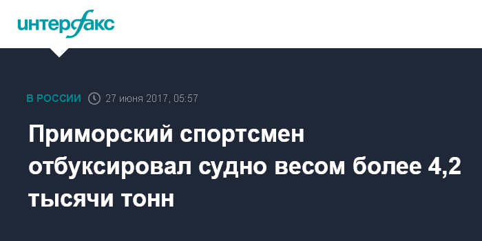 Москва. 27 июня. INTERFAX.RU - Чемпион Дальнего Востока по пауэрлифтингу и тяжелой атлетике Иван Савкин в Приморье отбуксировал по морю судно весом более 4,2 тыс. тонн и посвятил достижение президенту РФ.