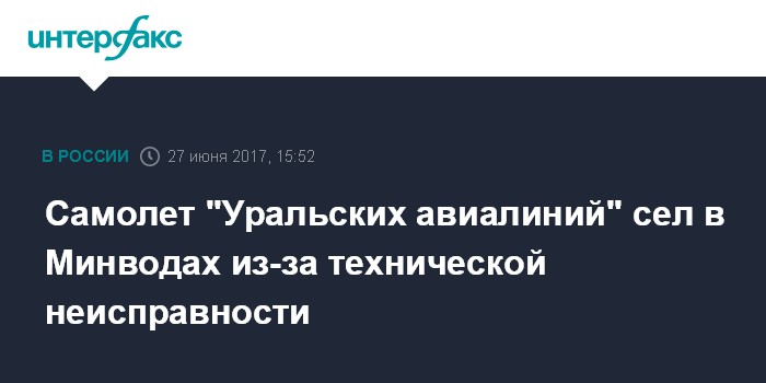 Москва. 27 июня. INTERFAX.RU - Самолет A320 авиакомпании "Уральские авиалинии", вылетевший из московского аэропорта Домодедово в Батуми (Грузия), по технической причине произвел посадку в аэропорту Минеральных вод. Об этом сообщили агентству "Интерфакс" в пресс-службе авиакомпании.