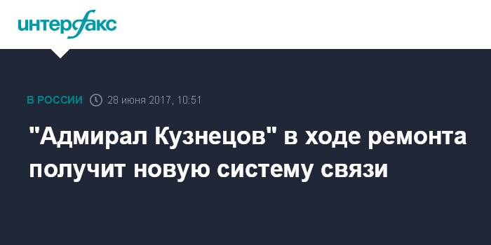 Москва. 28 июня. INTERFAX.RU - Тяжелый авианесущий крейсер "Адмирал Кузнецов" будет оборудован новейшими системами связи, сообщили в "Росэлектронике" (входит в "Ростех").