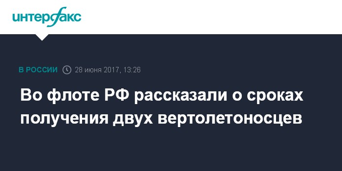 Москва. 28 июня. INTERFAX.RU - ВМФ России до 2025 года намерен получить два вертоленосца. Об этом сообщил замглавкома ВМФ России Виктор Бурсук.