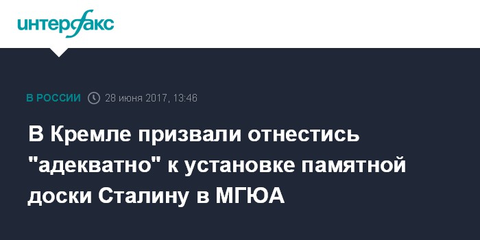 В Кремле призвали отнестись "адекватно" к установке памятной доски Сталину в МГЮА