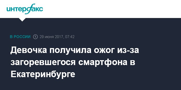 Москва. 29 июня. INTERFAX.RU - Следственные органы в Екатеринбурге проводят проверку после того, как девочка получила телесные повреждения из-за самопроизвольно загоревшегося смартфона, сообщает пресс-служба Следственного управления СКР по Свердловской области.