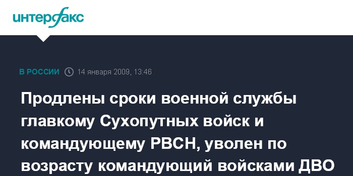 Продлены сроки военной службы главкому Сухопутных войск и командующему РВСН, уволен по возрасту командующий войсками ДВО