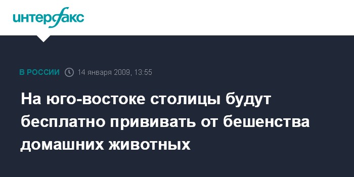 "В округе с января по май 2009 года будут открыты 104 прививочных пункта в каждом из 12 районов округа. Бесплатное вакцинирование домашних животных от бешенства предполагается проводить до мая 2009 года", - рассказал Зотов.