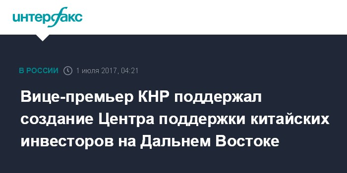 Вице-премьер КНР поддержал создание Центра поддержки китайских инвесторов на Дальнем Востоке