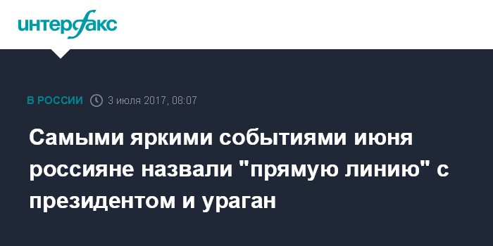 Самыми яркими событиями июня россияне назвали "прямую линию" с президентом и ураган