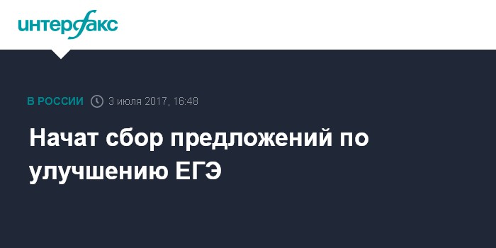 Все предложения предлагается отправлять до 11 августа по электронной почте по адресу ege2018@obrnadzor.gov.ru, говорится в сообщении, поступившем в "Интерфакс" в понедельник.