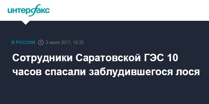 Москва. 3 июля. INTERFAX.RU - Сотрудники Саратовской ГЭС (город Балаково, Саратовская обл.) помогли выбраться на берег лосю, которого течение принесло слишком близко к плотине, сообщила "Интерфаксу" пресс-секретарь ГЭС Ирина Егорова.
