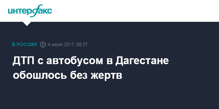 Москва. 4 июля. INTERFAX.RU - В аварии с участием пассажирского автобуса произошла в Тарумовском районе Дагестана никто не погиб, однако есть пострадавшие, сообщили "Интерфаксу" в пресс-службе МВД республики.
