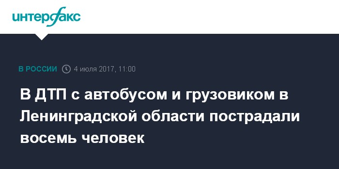 Москва. 4 июля. INTERFAX.RU - Грузовой автомобиль и пассажирский автобус столкнулись на дороге в Кировском районе Ленинградской области, пострадали восемь человек. Об этом сообщили "Интерфаксу" в пресс-службе регионального управления ГИБДД во вторник.