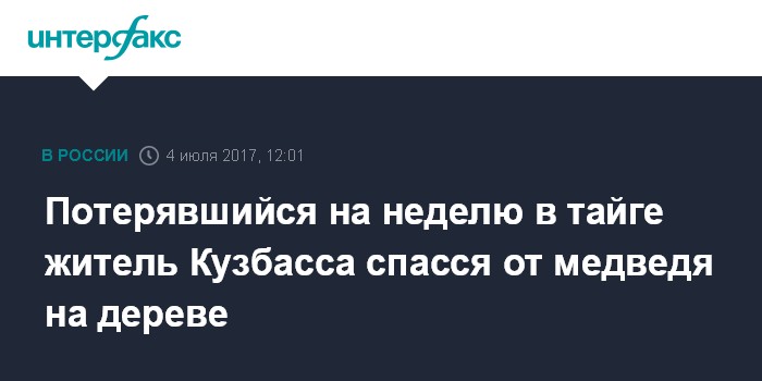 Москва. 4 июля. INTERFAX.RU - Полицейские обнаружили в тайге Чебулинского района Кузбасса мужчину, который заблудился на прошлой неделе, сообщает пресс-служба главного управления МВД по Кемеровской области во вторник.