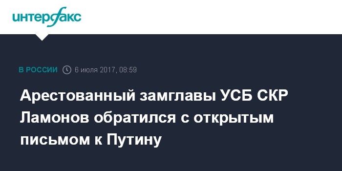 Арестованный замглавы УСБ СКР Ламонов обратился с открытым письмом к Путину