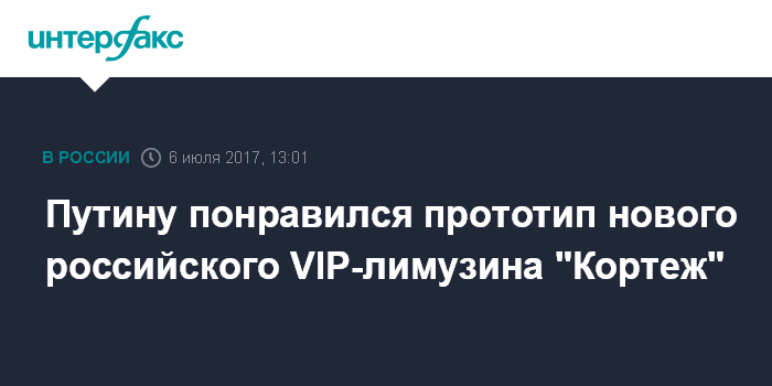 Комментируя, по просьбе журналистов, сообщение о том, что Путин протестировал "Кортеж", Песков сказал: "Эта информация слегка преувеличенная. Дело в том, что машина еще не готова. Действительно, есть некие наброски, скажем так, прототип президент видел, ему понравилось".