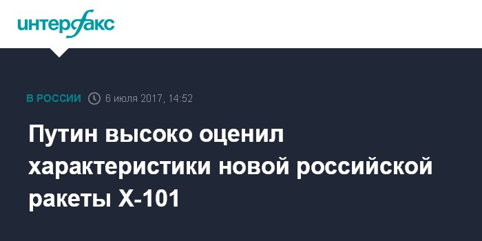 Москва. 6 июля. INTERFAX.RU - Президент РФ Владимир Путин высоко оценил боевые характеристики новейшей отечественной ракетной системы Х-101, отметив ее высокую надежность.