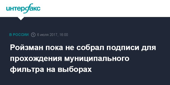 Москва. 6 июля. INTERFAX.RU - Мэр Екатеринбурга Евгений Ройзман собрал только 30% от необходимого количества подписей депутатов, необходимых для прохождения муниципального фильтра на выборы губернатора Свердловской области.