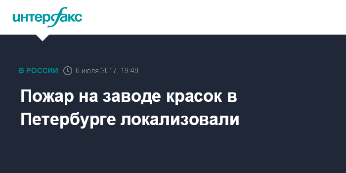 Москва. 6 июля. INTERFAX.RU - Пожар в ангаре Невского лакокрасочного завода на юге Петербурга локализован, сообщает ГУ МЧС по Петербургу.