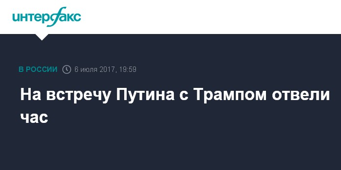 Москва. 6 июля. INTERFAX.RU - Встреча президента РФ Владимира Путина и президента США Дональда Трампа "на полях" саммита G20 в Гамбурге намечена на вечер пятницы.
