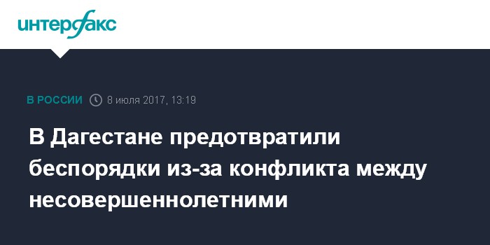 Москва. 8 июля. INTERFAX.RU - Сотрудники МВД по Дагестану накануне предотвратили массовые беспорядки, угроза которых возникла из-за конфликта между несовершеннолетними, сообщили "Интерфаксу" в пресс-службе ведомства в субботу.