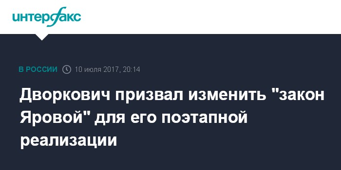 Москва. 10 июля. INTERFAX.RU - Вице-премьер РФ Аркадий Дворкович считает, что для того, чтобы определить этапы введения требований для операторов в рамках "закона Яровой", необходимо внести изменения в него.