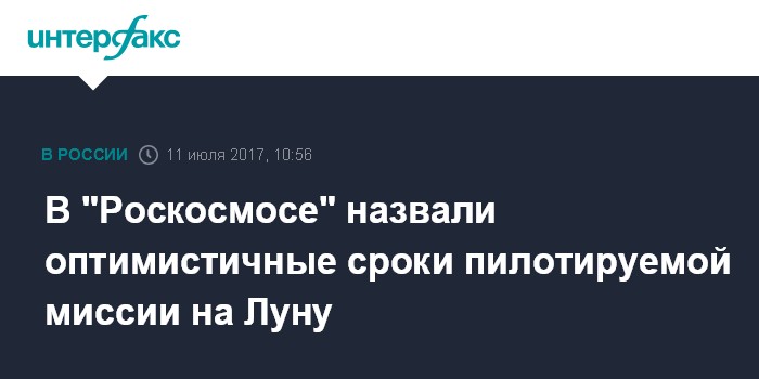 Москва. 11 июля. INTERFAX.RU - Наиболее оптимистичные календарные сроки реализации пилотируемой миссии на Луну приходятся на 2030 год, сообщил журналистам глава Роскосмоса Игорь Комаров.