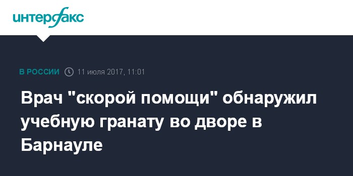 "От старшего врача станции скорой медицинской помощи Барнаула поступила информация об обнаружении предмета, похожего на гранату, во дворе у дома по проспекту Красноармейскому", - говорится в сообщении.
