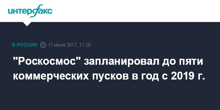"Роскосмос" запланировал до пяти коммерческих пусков в год с 2019 г.