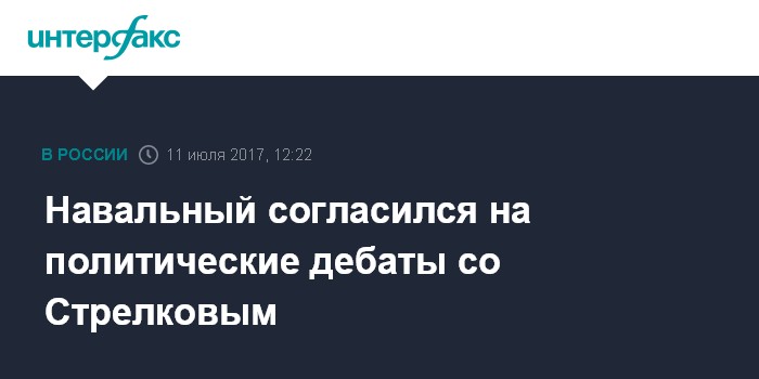 Москва. 11 июля. INTERFAX.RU - Оппозиционер Алексей Навальный согласился участвовать в открытых политических дебатах с бывшим лидером ополчения ДНР Игорем Стрелковым (Гиркиным). Об этом Навальный сообщил в своем фейсбуке.