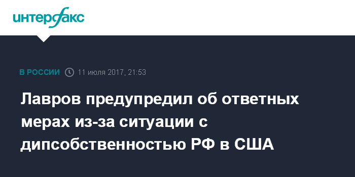 Лавров предупредил об ответных мерах из-за ситуации с дипсобственностью РФ в США