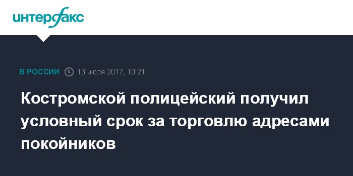 Костромской полицейский получил условный срок за торговлю адресами покойников