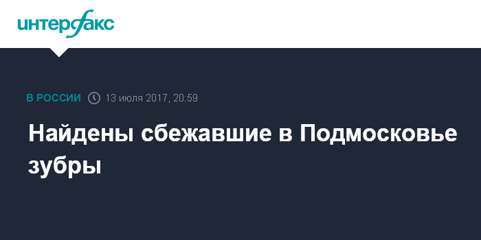 Москва. 13 июля. INTERFAX.RU - Найдены молодые зубры, которые ранее ушли с территории Приокско-Террасного заповедника в Подмосковье, написал в своем фейсбуке министр природных ресурсов и экологии Сергей Донской.