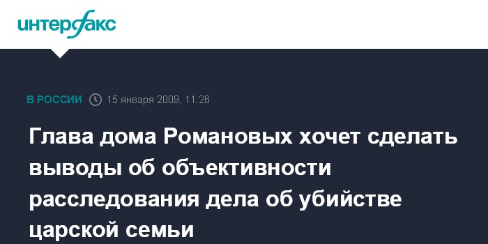 Глава дома Романовых хочет сделать выводы об объективности расследования дела об убийстве царской семьи