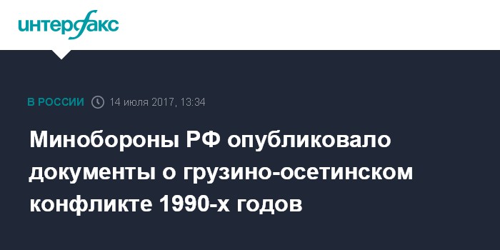 Москва. 14 июля. INTERFAX.RU - Архивные документы, касающиеся урегулирования грузино-осетинского конфликта 1991-1993 годов, опубликованы на сайте Минобороны РФ.
