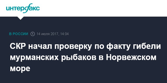Москва. 14 июля. INTERFAX.RU - К расследованию гибели четверых мурманских моряков на судне во время промысла в Норвежском море подключились следователи.