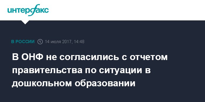 "Правительство РФ в очередной раз отчиталось о том, что средняя наполняемость групп в детсадах практически сравнялась с нормой. Однако мониторинг, проведенный экспертами ОНФ, показывает, что исполненным поручение можно считать лишь по формальным признакам, а общая картина свидетельствует об отсутствии реальной доступности дошкольного образования", - заявили "Интерфаксу" в пресс-службе.