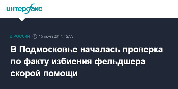 Москва. 15 июля. INTERFAX.RU - Доследственная проверка проводится в связи с избиением фельдшера скорой помощи в Московской области, сообщили "Интерфаксу" в субботу в Главном следственном управлении СК по региону.