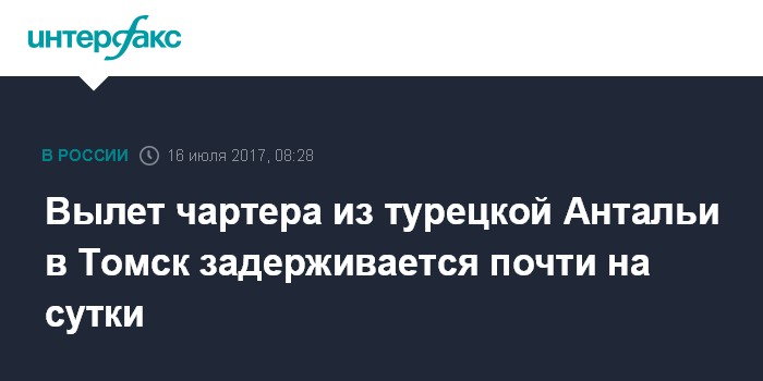 Вылет чартера из турецкой Антальи в Томск задерживается почти на сутки