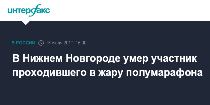 Москва. 16 июля. INTERFAX.RU - Участник нижегородского полумарафона "Кремлевская стена" скончался во время забега в воскресенье, сообщили "Интерфаксу" организаторы мероприятия.