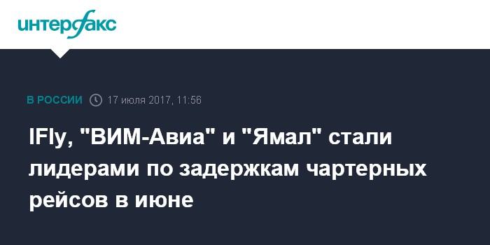 Москва. 17 июля. INTERFAX.RU - Авиакомпании IFly, "ВИМ-Авиа" и "Ямал" стали лидерами по доле задержанных более чем на 2 часа чартерных международных рейсов в июне, следует из статистики Росавиации, опубликованной в понедельник.