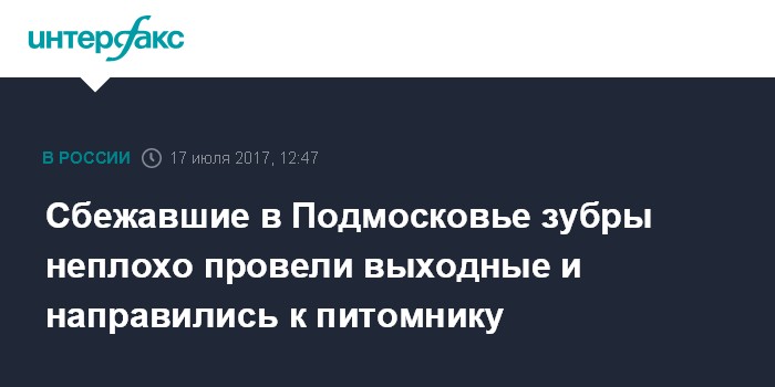 Москва. 17 июля. INTERFAX.RU - Зубры, сбежавшие на прошлой неделе из Приокско-Террасного заповедника, вернулись на его территорию и движутся по направлению к питомнику. Об этом сообщила "Интерфаксу" замдиректора заповедника по содержанию и разведению зубров Ирина Землянко.