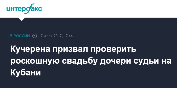 Москва. 17 июля. INTERFAX.RU - Судейское сообщество должно отреагировать на сообщения СМИ, рассказавших о роскошной многомиллионной свадьбе дочери судьи из Краснодарского края, считает глава Общественного совета при МВД РФ, адвокат Анатолий Кучерена.