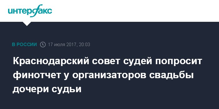 Краснодарский совет судей попросит финотчет у организаторов свадьбы дочери судьи