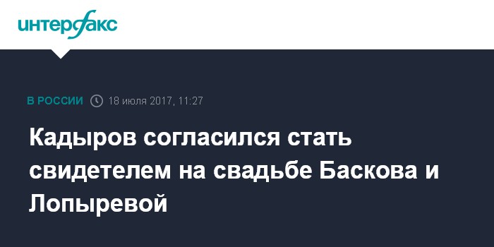 Глава Чечни выложил видео, на котором Басков просит его стать свидетелем на свадьбе и надевает кольцо на палец своей невесте, а Кадыров соглашается стать свидетелем.