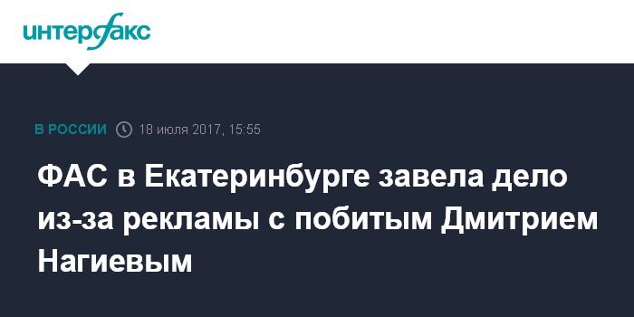 Москва. 18 июля. INTERFAX.RU - Управление Федеральной антимонопольной службы (УФАС) по Свердловской области возбудило дело по признакам нарушения рекламного законодательства в наружной рекламе "Новое радио 90.8 FM", где изображен актер Дмитрий Нагиев с синяком под глазом и кровоподтеками на лице, сообщает пресс-служба ведомства. Дело было возбуждено после того, как в УФАС с соответствующим заявлением обратилась горожанка.