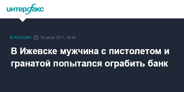 В Ижевске мужчина с пистолетом и гранатой попытался ограбить банк