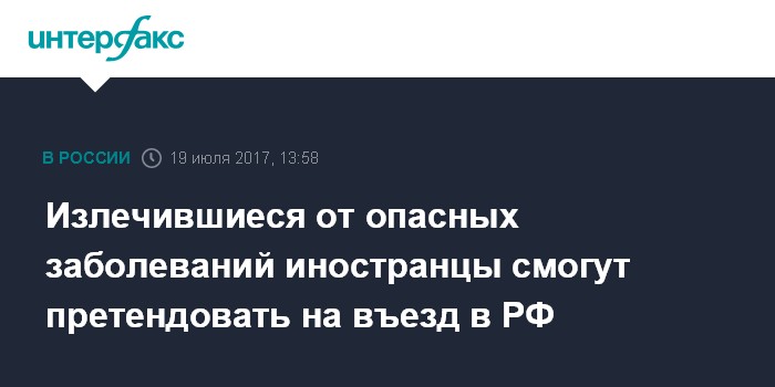 Излечившиеся от опасных заболеваний иностранцы смогут претендовать на въезд в РФ